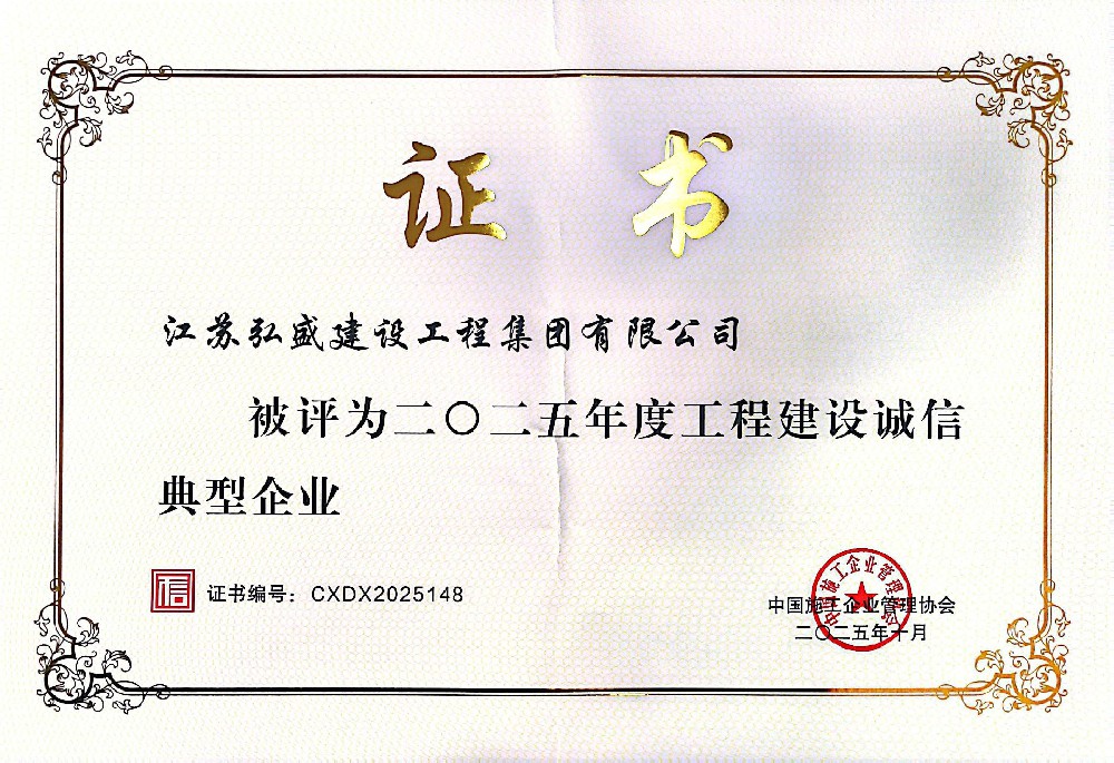以誠(chéng)信鑄就品牌發(fā)展基石 ——弘盛集團(tuán)榮膺“2025年工程建設(shè)誠(chéng)信典型企業(yè)”